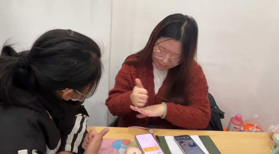 看起来这个工作不懂手语也能做,但其实聋人的文字表达和性格都有些特殊性,顾心如在学校与聋人接触较多,对他们的语序、语言习惯和行为方式更加熟悉。也有骑手不习惯发文字,就打视频电话给顾心如,这时她的手语优势更加明显。